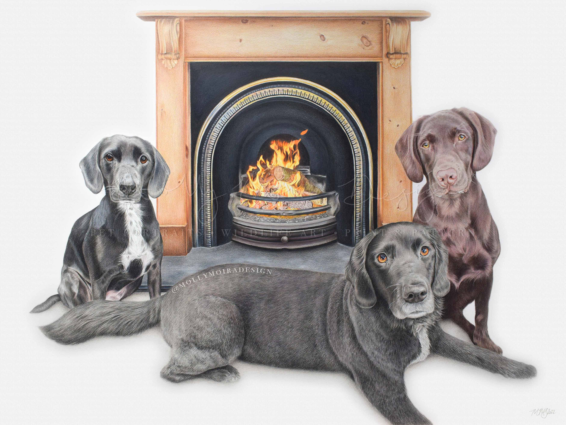 Lola and Kirby, Large, Coloured Pencil, 14x11"